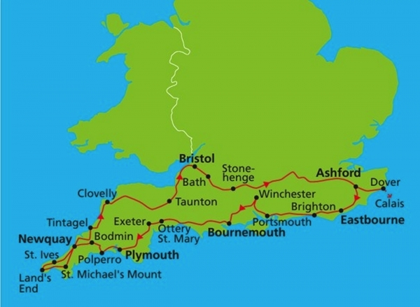 Anreise über Calais. Fährpassage nach Dover. Ihre Reise führt Sie entlang der herrlichen Südküste bis in das gemütliche Seebad Eastbourne, wo Sie die erste Nacht verbringen werden.